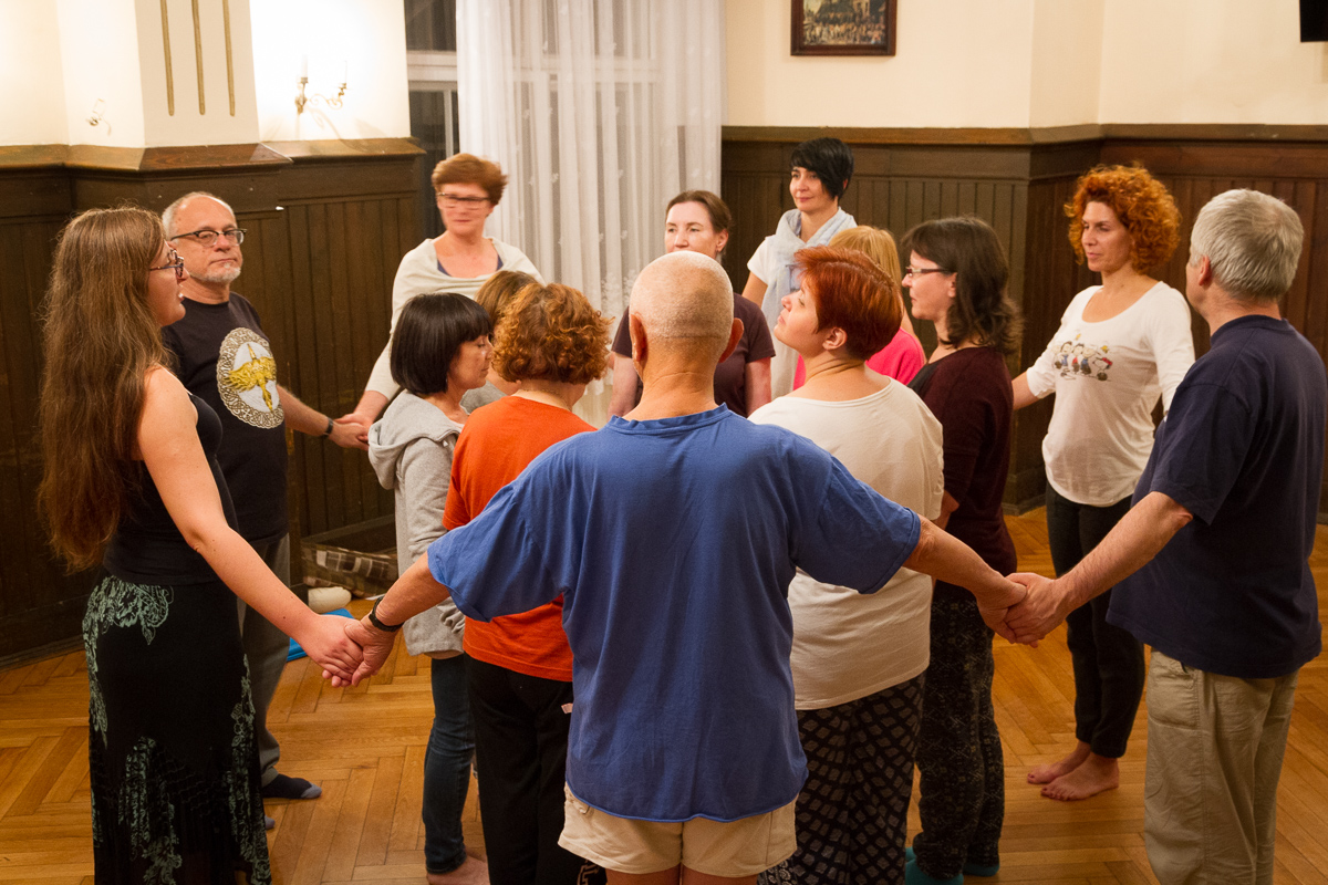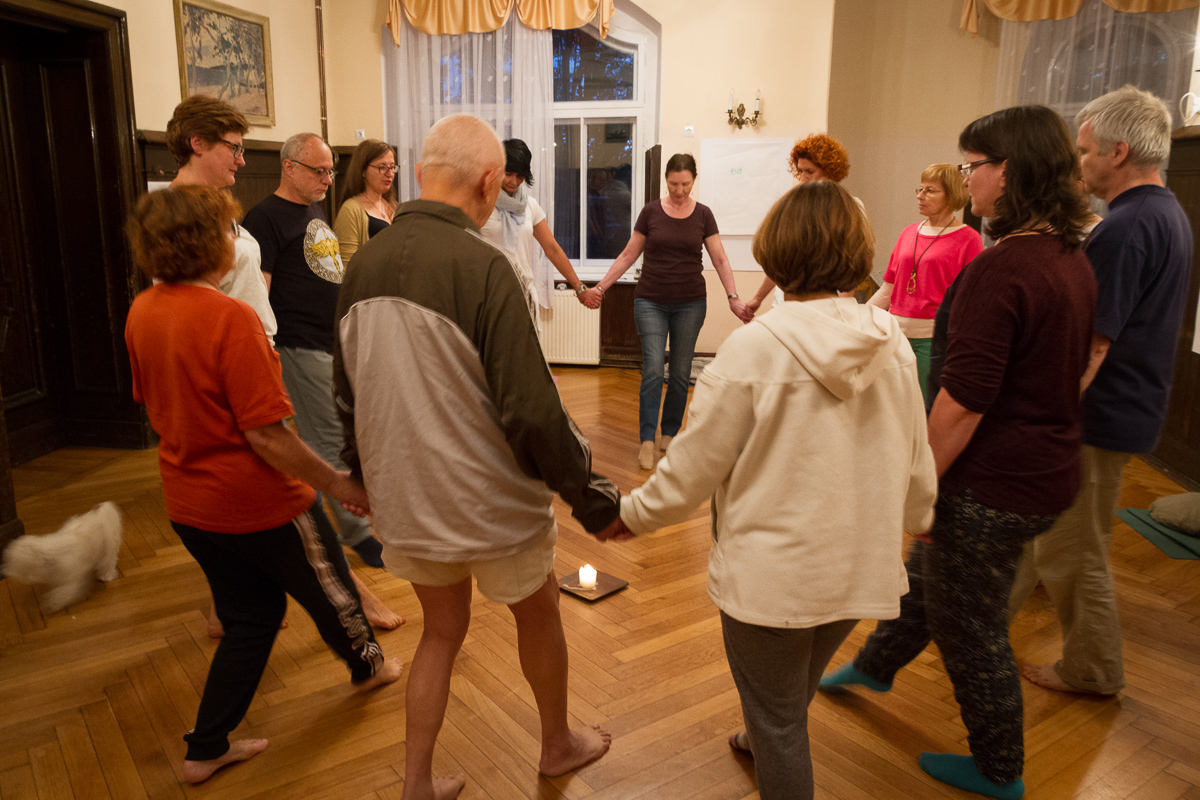 w kręgu.